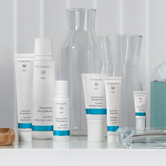 Ob extrem trockene Haut mit Juckreiz, kribbelnde Lippen oder entzündliches Zahnfleisch: Dr. Hauschka MED ist auf die besonderen Bedürfnisse Ihrer Haut-, Zahn- und Lippenpflege abgestimmt. Die kompetente Basis dafür bildet mehr als 80-jährige Erfahrung der WALA Heilmittel GmbH, wo auch die WALA Arzneimittel hergestellt werden. Viele pflanzliche Inhaltsstoffe haben sich in der medizinischen Pflege bewährt: Zum Beispiel hilft der Presssaft von Mittagsblumen, selbst neurodermitische Haut zu beruhigen und ihre natürliche Barriere zu reaktivieren. Die Feuchthaltefaktoren der Mittagsblume ähneln zudem denen der menschlichen Haut und können dieser langfristig dabei helfen, Feuchtigkeit selbständig zu bewahren.